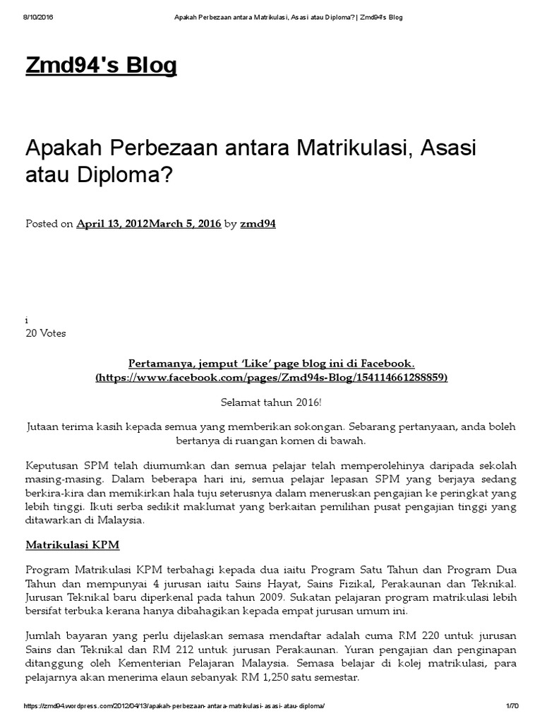 Lulus spm dengan lima (5) kepujian termasuk bahasa melayu dan lulus sejarah (mulai spm tahun 2013). Di jordan, pelajar hanya perlu memasukkan nombor pengenalan untuk mendapat keputusan peperiksaan dan portal itu juga akan memberi panduan kursus apa yang sesuai dengan keputusan. Langkah itu bagi mengelak salah padanan pengajian yang akhirnya menyebabkan pelajar sukar. Peluang untuk dapat tempat di ipta (sambung kolej komuniti dan politeknik di bawah ada pelbagai jenis kursus kemahiran yang ditawarkan. Universiti pendidikan sultan idris (upsi) adalah merupakan universiti awam dan juga institut pengajian tinggi awam (ipta) yang terdapat di malaysia.